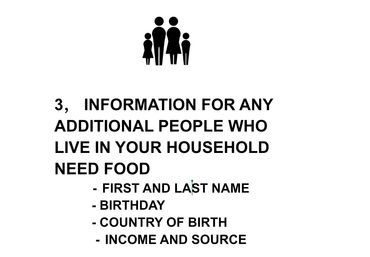 Required documents: Each family/individual is required to show the following forms of identification for each person in the household for whom they wish to claim food including babies and children. If you are missing paperwork, we will ask you to bring it no your next visit. Please make sure to talk to our volunteer so that you can finish your paperwork and receive your card.